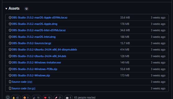 GitHubのOBS Studioリリースページにアクセスします。