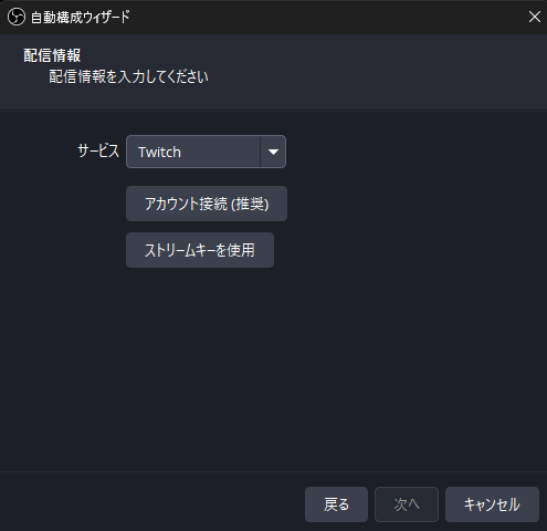 自動構成ウィザードは、OBS Studio を初めて起動したときに、配信や録画に必要な基本設定を自動で行う機能です。