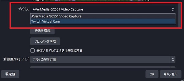 もし別のデバイスが選ばれていたり、そもそも選択されていない場合は、正しいキャプチャーボードを選びましょう。