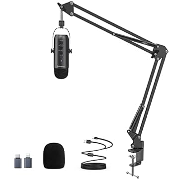 ゲインコントロール、リアルタイムモニタリング、ワンキーノイズ除去機能により、配信中の基本的な音声管理ができます。ショックマウント、ポップフィルター、ブームアームが付属し、セット内容としても実用的なモデルといえるでしょう。