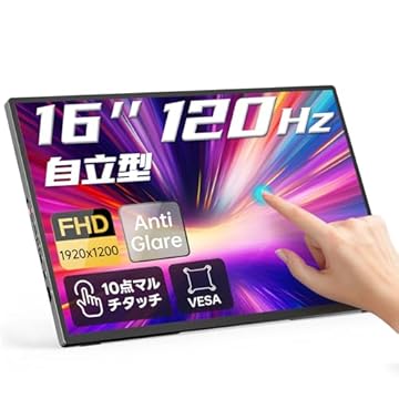 120Hzの高リフレッシュレートに対応した、ゲーム配信に最適な16インチの大画面モニターです。標準的なHDMIポートを搭載しているため、据え置きゲーム機やデスクトップPCからの映像信号を遅延なく、かつ高精細に映し出すことが可能です。16:10の画面比率はゲーム画面の端まで見渡しやすく、タッチ操作のレスポンスも非常に速いため、スピード感を重視するユーザーに最適です。