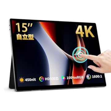画面サイズ 15インチ 重量 988g 解像度 4K(3840×2160) 接続方法 mini HDMI / USB Type-C 液晶パネル IPS 表面処理 グレア スタンドカバー カバー別・スタンド一体型